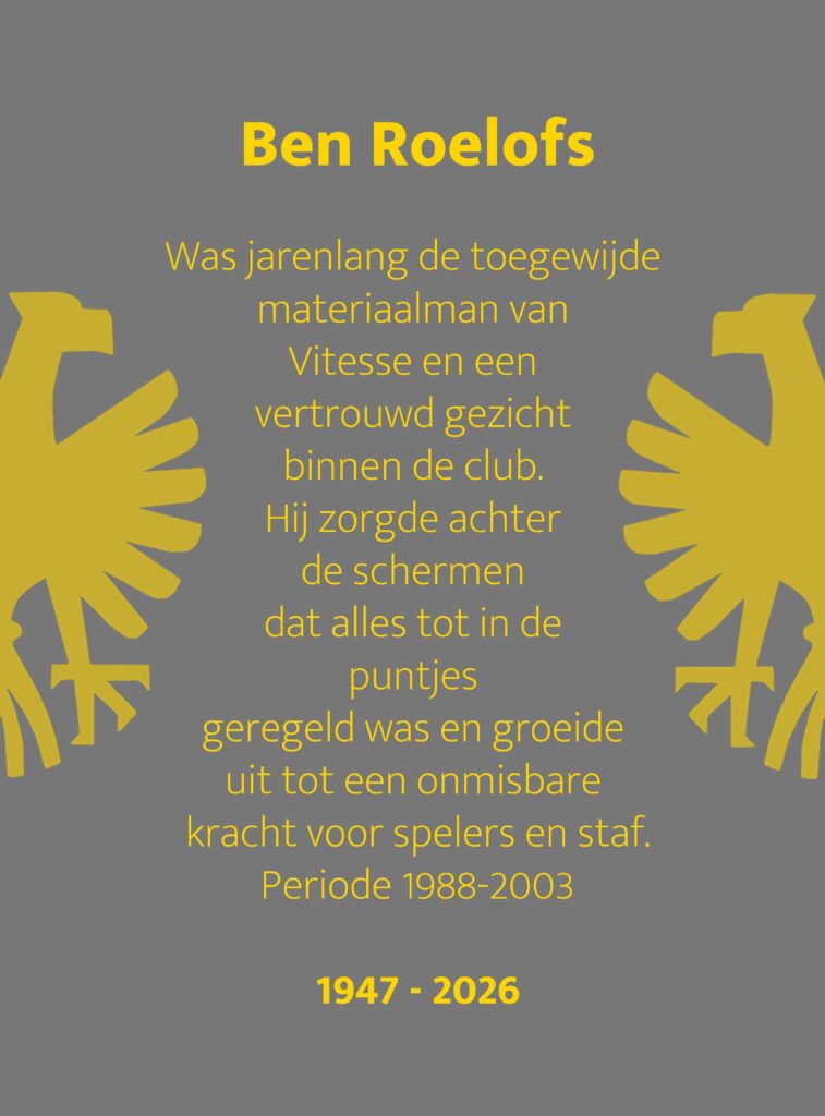 2026 Ben Roelofs in Memoriam maart 24, 2026maart 24, 2026 Foto Vitesseshirts | Ben Roelofs in Memoriam. Vitesse Seizoen Vitesse Shirts