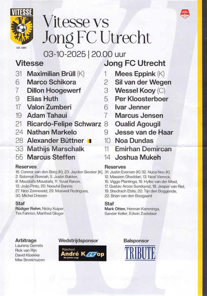 Speelronde 10 Vitesse – Jong FC Utrecht 2-0